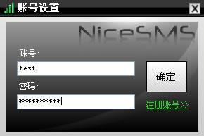 第二步,在这里填上短信平台的账号,确定后进入主界面
